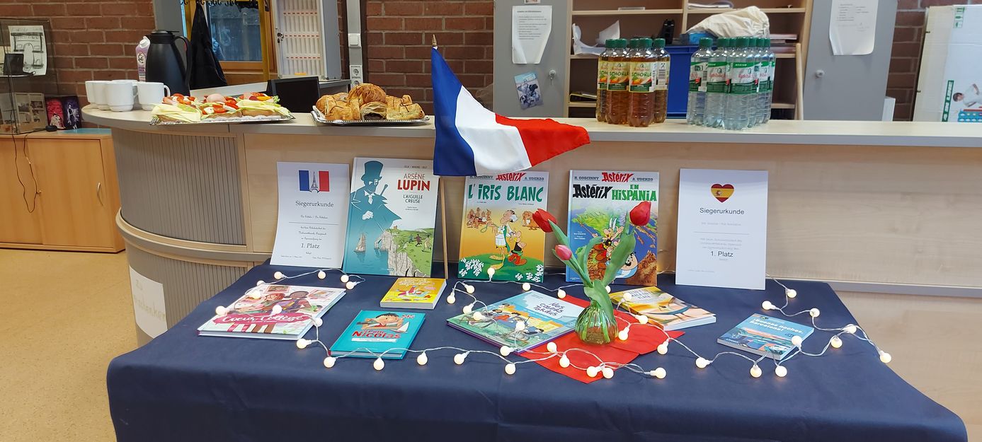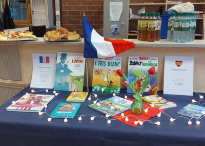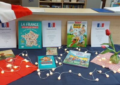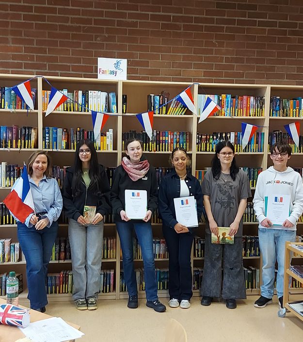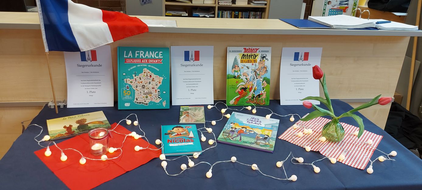 Nachdem der Schulentscheid des Französisch-Vorlesewettbewerbs am 11.02.2026 die besten Vorleser der Anne-Frank-Schule Linden ermittelt hatte, ging es am 25. Februar 2026 in der nächsten Runde auf regionaler Ebene weiter. Da sich inzwischen viele Schülerinnen und Schüler nicht trauen, vor einer Jury in französischer Sprache laut zu lesen, hatten unsere Kandidatinnen für die Realschule, Holly Bopf, und in der Kategorie Muttersprachler, Maria Stein, ein leichtes Spiel. Sie gelangten durch fehlende Mitstreiter mühelos auf Platz 1 und wurden für ihren Mut, die Herausforderung anzunehmen, geehrt und belohnt. Unter den Gymnasiasten traten drei Kandidaten gegeneinander an, die jeweils die Friedrich-Ebert-Schule in Wieseck, die Clemens-Brentano-Europaschule in Allendorf und die Anne-Frank-Schule in Linden repräsentierten. Nach einer soliden Vorleseleistung von Wahl- und Pflichttext gewann schließlich Tamino Kretschmer von der Friedrich-Ebert-Schule mit „La vie de Jules Verne“ den ersten Preis. Der geschichtsinteressierte Junge freute sich besonders über das gewonnene Sachbuch “La France expliquée aux enfants: ses régions, son histoire, son patrimoine„, das genauso wie alle anderen vier Buchpreise von unserem großzügigen Förderverein gestiftet wurde. Dadurch unterstützt dieser aktiv die Freude der neuen Generationen an Büchern und ermutigt sie dazu, weiterzulesen. Nächstes Jahr wird nun die Friedrich-Ebert-Schule als Siegerschule im Kreis Gießen den Regionalentscheid ausrichten. Heute darf aber erst einmal Tamino seinen wohl verdienten Sieg genießen und wir rufen alle völlig begeistert: „Bravo!“